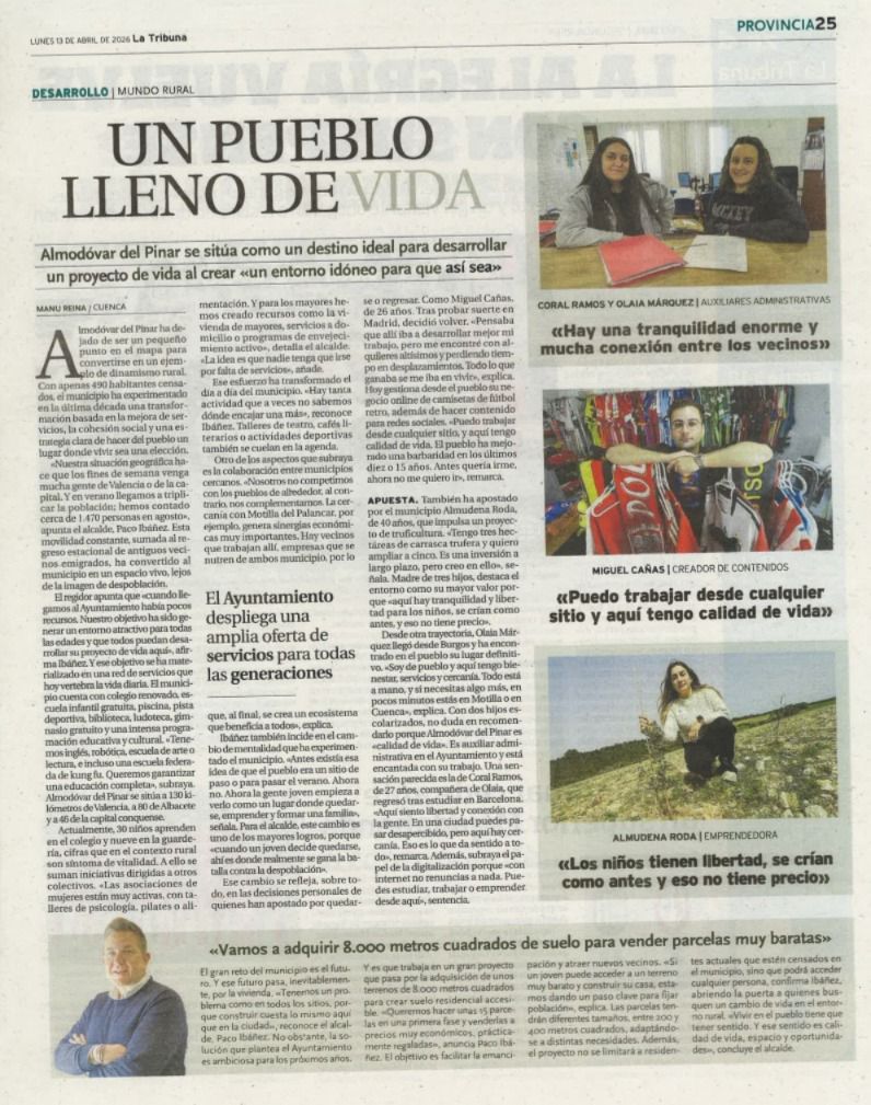 Almodóvar del Pinar se sitúa como un destino ideal para desarrollar un proyecto de vida al crear «un entorno idóneo para que así sea». https://www.latribunadecuenca.es/noticia/z974368e3-56b2-4af0-a23b7c11d736d7bc/202604/un-pueblo-lleno-de-vida